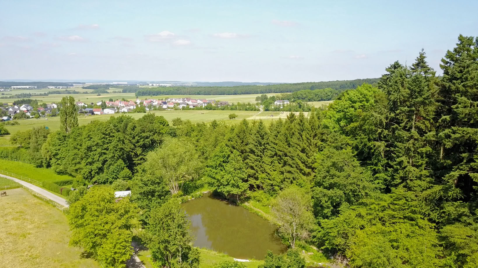 Blick über einen Fischweiher Richtung Osten (Pohl- bzw. Kirch-Göns)