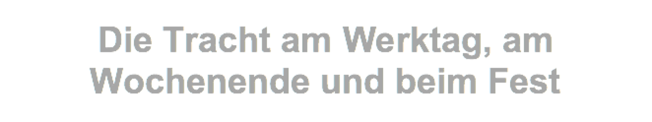 Dem Hauptanliegen der bäuerlich-schaffenden Gruppe paßt sich so die Tracht im wechselnden Rhythmus an. Eine große Rolle spielt hierbei das räumliche Beisammensein, das sich vor allem auch da zeigt, wo die Arbeitsplätze Gemeindebesitz sind, wie z.B. das Backhaus in der Dorfmitte und die frühere Tuchbleiche.
